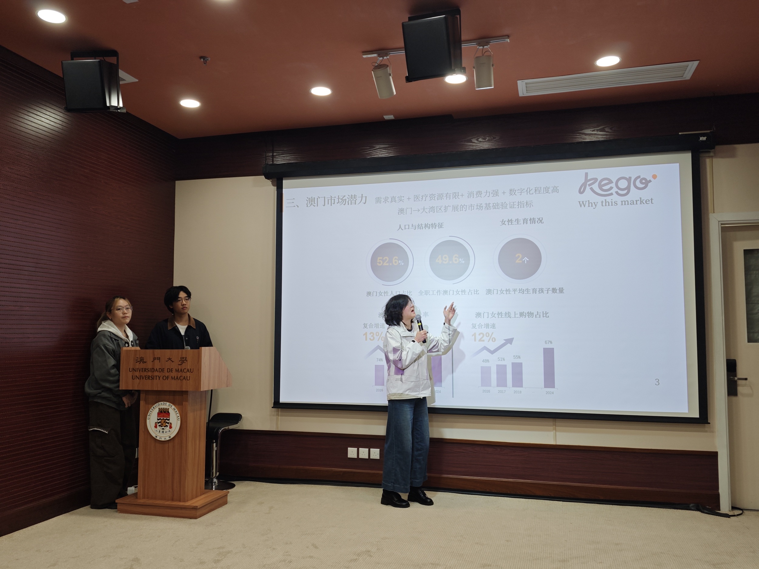 培訓營的學員以不同的創業項目進行比拼,並由黃承發、前澳門啤酒總經理洪漢杰、香港理工大學應用物理學系高級講師詹國龍等多位企業代表及專業人士,從創新性、市場潛力、技術可行性、社會價值等方面進行綜合評估。最終,由澳大工商管理學院、鄭裕彤書院學生楊楊、盧讓嘉誠,以及香港理工大學應用物理系學生周致組成的Kego組所提交的智能盆底肌訓練系統項目,憑藉清晰的市場定位及實用價值獲得冠軍,並贏得由工銀澳門贊助的 4,000 澳門元現金獎。該項目聚焦女性健康領域,推動盆底肌修復產品在澳門市場的應用與普及,回應女性在產後康復及健康管理方面的實際需求,展現了創業項目結合社會議題與市場導向的潛力。