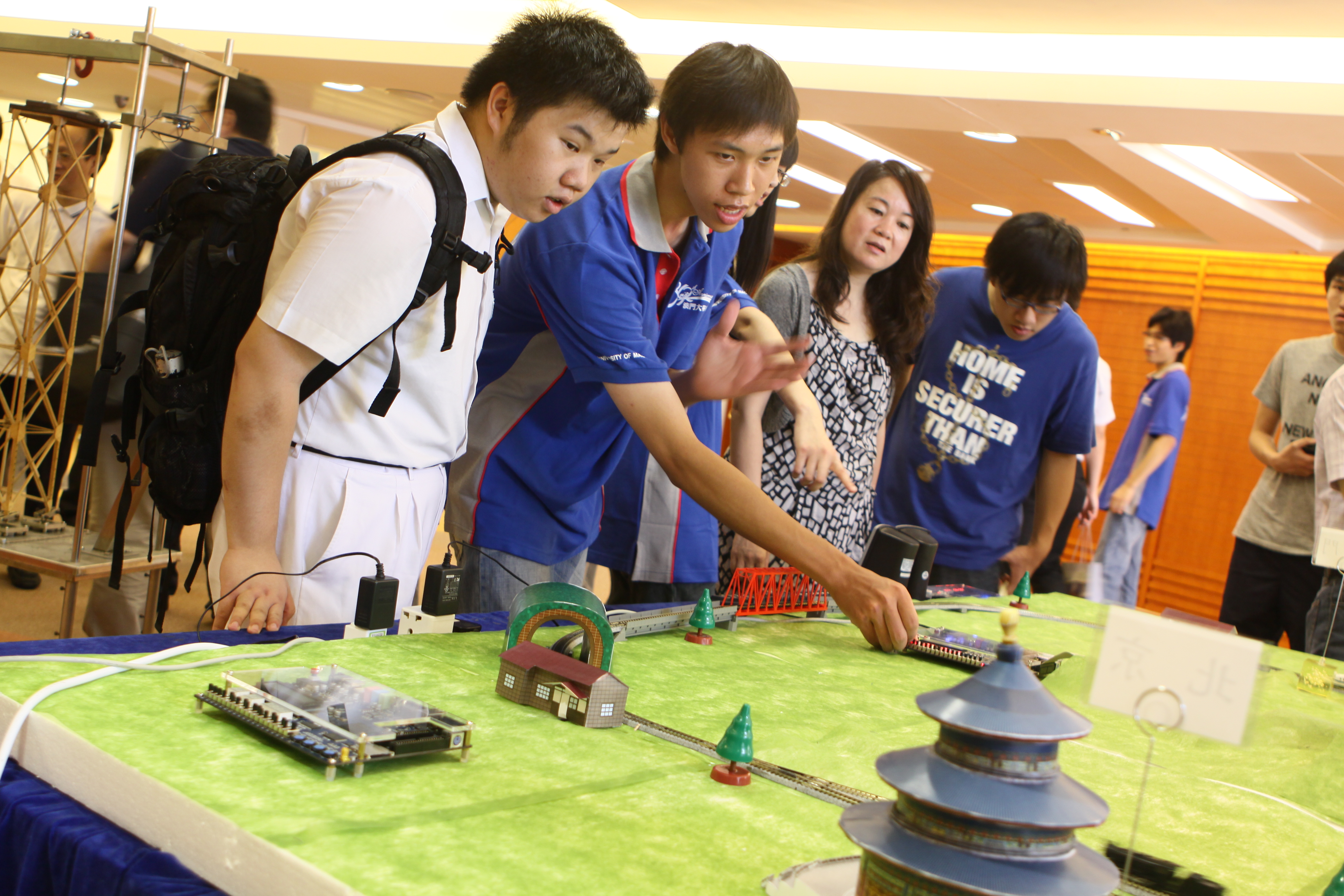“應用機電工程技術於輕軌工程夏令營”包括材料原理教學,輕軌控制、管理原理教學,材料實習及輕軌控制實習,輕軌系統運行分析、故障診斷及三維設計模型構造,人因工程基礎知識教學,輕軌車廂環境分析及優化設計。“土木工程夏令營”透過互動趣味工程實驗、集體遊戲、工程模型製作比賽進行,學員還可親身體驗澳大住宿式書院的生活。