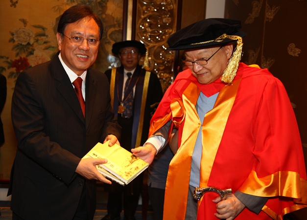 澳門大學向傑出文學家查良鏞博士(筆名金庸)頒授榮譽文學博士學位,以表彰其在文化領域創造的傑出成績和對社會做出的卓越貢獻。
