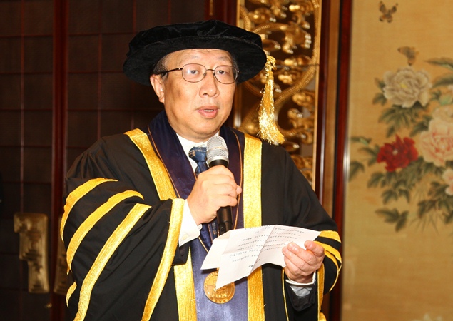 查良鏞博士致辭時表示:“深切感謝澳大授予榮譽文學博士學位,澳門跟我關係很密切,還特別設立了一個金庸圖書館。我也曾到過澳門多次,日後有機會,也希望可以到澳門和澳大看看。”查良鏞博士出生於浙江海寧,曾從事記者、編輯、出版工作。他以金庸為筆名發表的十五部武俠小説在華語世界深入人心,以至有人說,有華人的地方就有金庸小說。查博士也是一位出色的政治評論家,他在由其一手創立的《明報》上發表的社評見解深刻獨到,深受各界尊重。除了文化領域,查博士還於70年代末80年代初參與香港的政治事務。查博士在中國文學的創新方面建樹良多,為於全世界普及漢語、宣揚中華傳統文化和價值觀作出了巨大貢獻,同時他還以畢生精力孜孜不倦追求學問,他的卓越成就正是尊重學術、尊重知識、尊重文明與智慧的寫照。