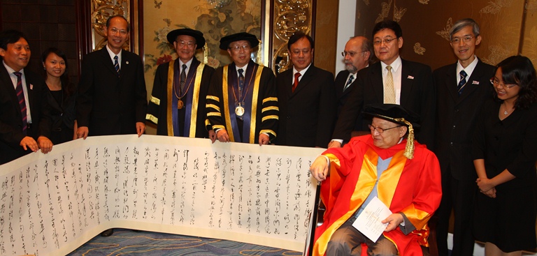 | 澳大向查良鏞博士送贈一幅讚辭卷軸 |