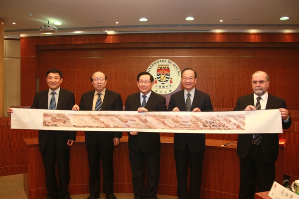 全國政協副主席、國家科技部部長萬鋼一行十四人到訪澳大,獲澳大校董會主席謝志偉、校長趙偉、副校長(研究)馬許願、科技學院院長陳俊龍、中華醫藥研究院院長王一濤等人接待。萬鋼表示,世界上沒有一所大學能涵蓋所有學科,故澳大定位成為一所具有特色的一流大學方向十分明確,在大學離不開社會的前提下,澳大要對推動澳門社會進步作出重大貢獻。萬鋼以「十年磨一劍」來讚賞澳大的科研工作。他稱科學研究沒十年、廿年不能成事,所以大學要建造潛心研究的環境,營造開放創新的氛圍,建成一支源源不繼的人才團隊,才能確保科研的發展。而國家科技部無論在國家科技計劃、研究基地以及人才培養上都會採取支持及開放的態度。最後他期望澳大能持續創新,繼續發揮大學的社會作用,促進與其他大學之間的合作和交流,在新的起點上取得更新的發展。