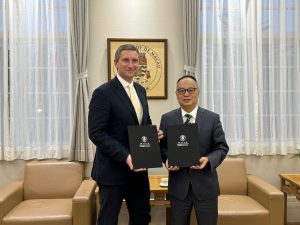 英國華威大學國際事務副校長Michael Scott今(28)日率團訪問澳門大學,獲澳大校長宋永華熱情接待。Michael Scott代表華威大學校長與宋永華交換合作備忘錄,兩校將在學生交換、聯合科研、課程共建等領域建立長效合作機制,標誌著兩校國際合作進入全新發展階段。